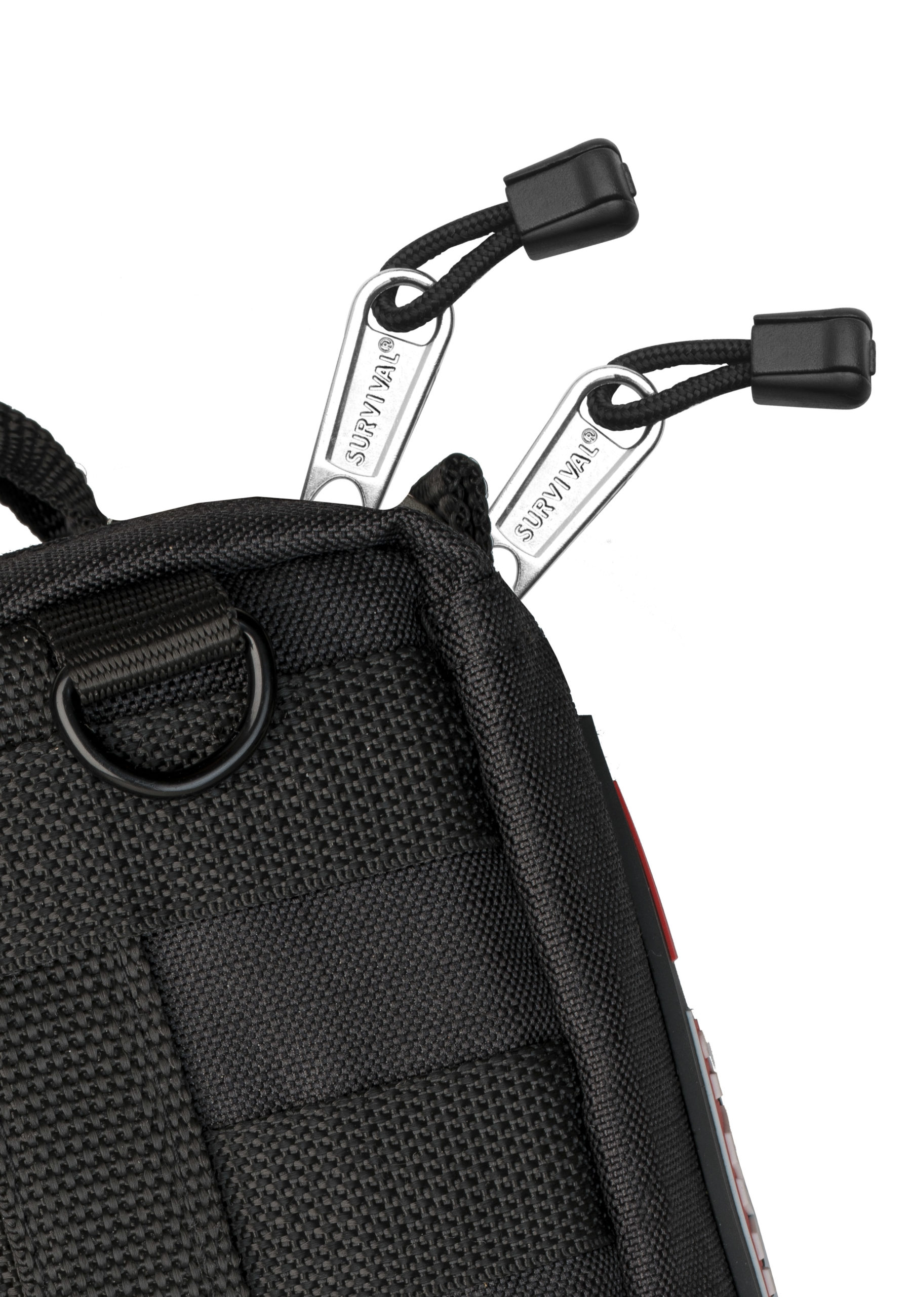 **The new and improved design for the SURVIVAL Vehicle First Aid KIT also features the sophisticated MOLLE system for tailored attachment, new shoulder straps and redesigned zips that are sturdier than ever before, with an extra layer of material on the outside that protects both zips and the KIT’s contents from the elements.**
